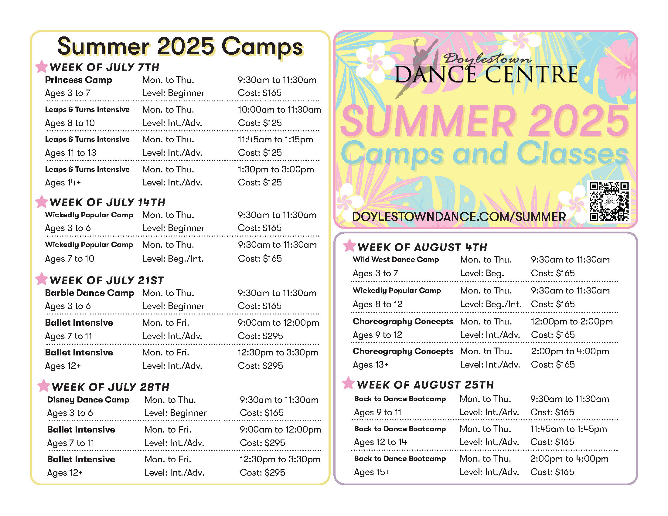 Summer Camps resume Monday, August 22nd with our Back to Dance Bootcamp and our Disney Dreams Camp!